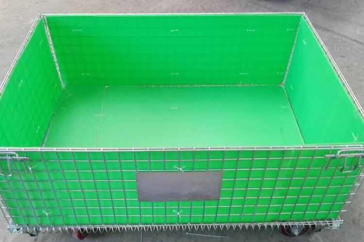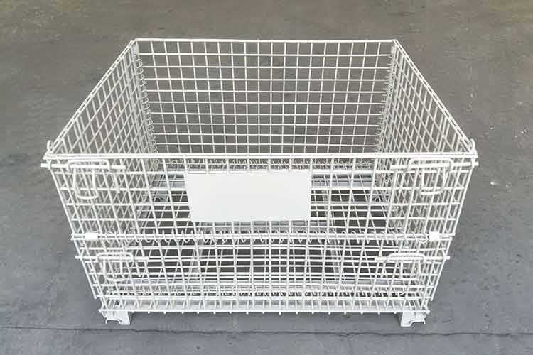 仓储笼主要材料为低碳铁丝、槽钢、热轧钢板等。仓储笼的外形感觉轻巧,笼体除底框外皆有铁丝碰焊成的网片组合而成,网片与网片、网片与底框靠小连接件连接,可活动。仓储笼空笼时可折叠存放,充分利用空间。仓储笼前面可打开,在堆垛后能取物,堆垛时承重在侧面的网片上。仓储笼目前已完全具备可堆垛性、可折叠性及可搬运性,日益成为物流流通的一种重要的标准物流容器。
